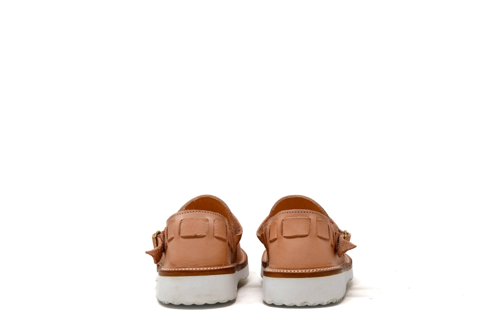 These sandals are handmade with a stitch-down technique, so they conform to the contours of your feet. Expect a tight fit to start, but don't worry, these shoes will stretch out with some wear!