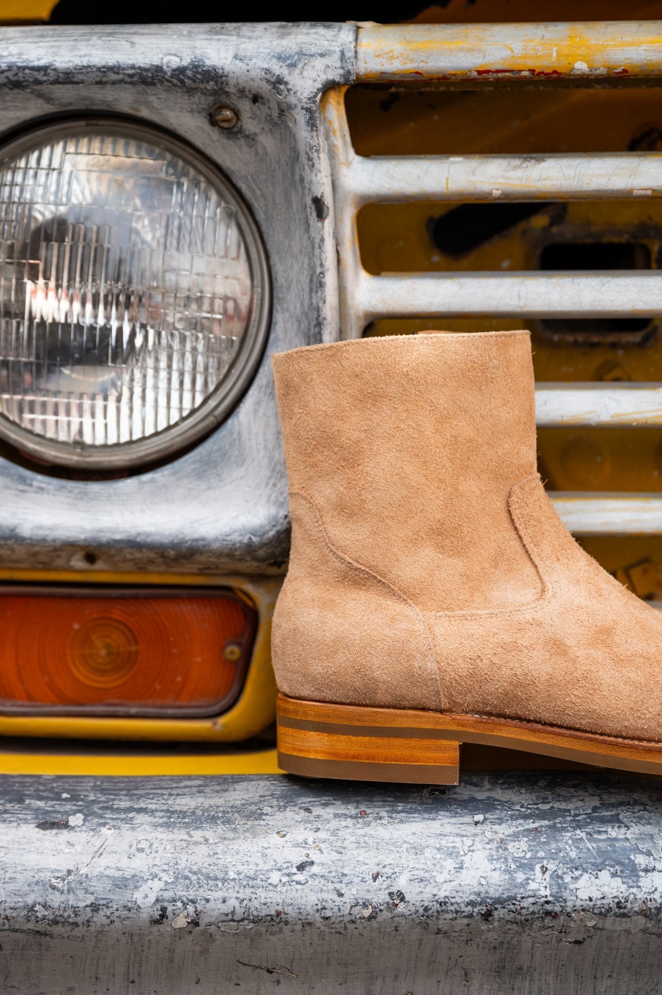 The Zip Boot is a versatile and stylish choice, crafted from premium suede leather. Its sleek design pairs effortlessly with any outfit, making it perfect for both casual and refined occasions. Featuring a DAINITE Studded sole and a 270 welt construction, these boots offer durability, comfort, and reliable grip. With a convenient zip closure and luxurious suede, they transition seamlessly from day to night, combining practicality and style in one must-have pair.