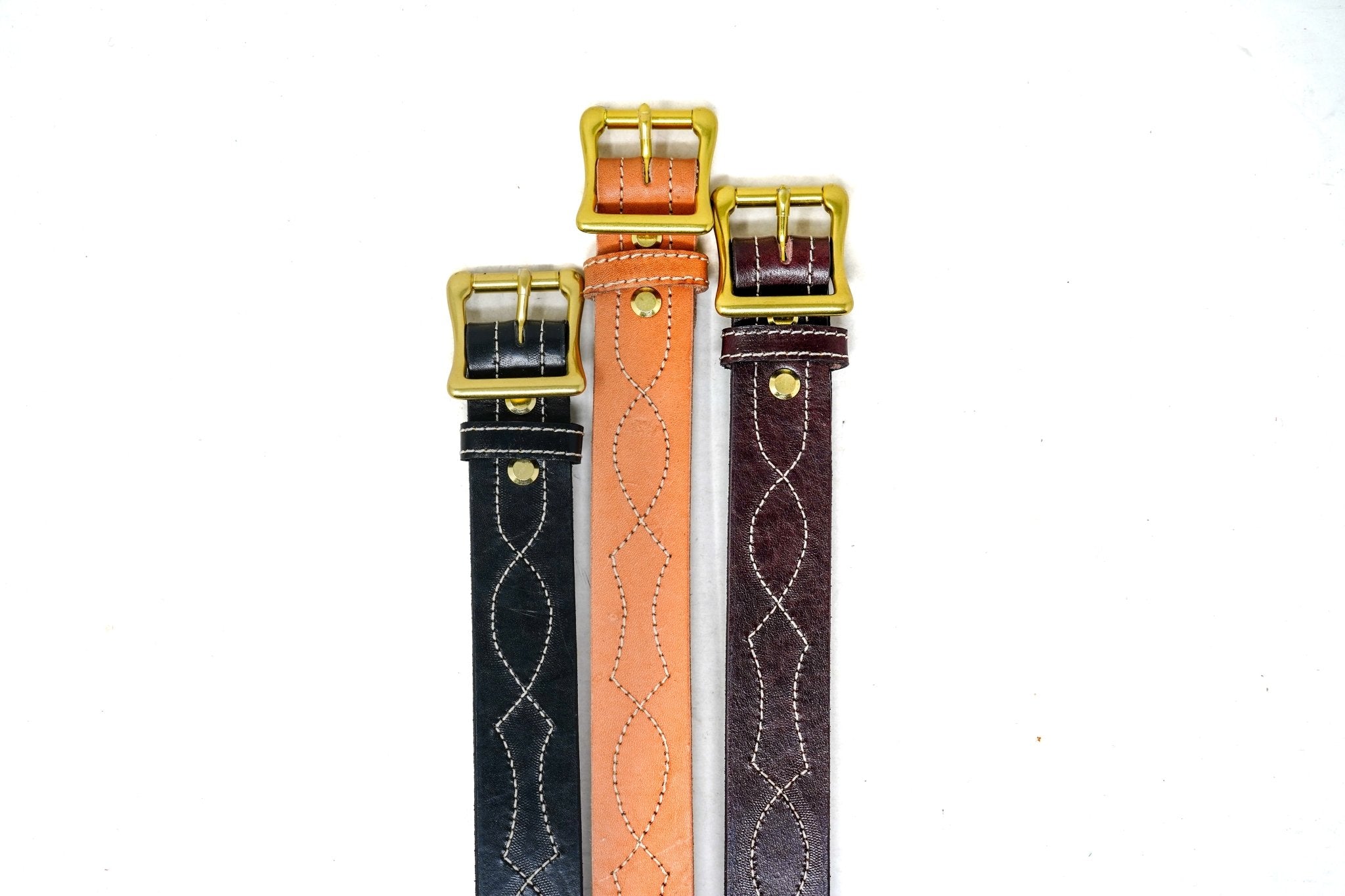 Embroidery Lucky Belt is a handcrafted leather belt that blends Western tradition with refined craftsmanship. Made from high-quality heavy pull-up leather, it features intricate embroidered details, a full brass buckle, and solid brass hardware for durability and style. Available in multiple rich colors, this belt is a timeless statement piece for those who appreciate quality and authenticity.