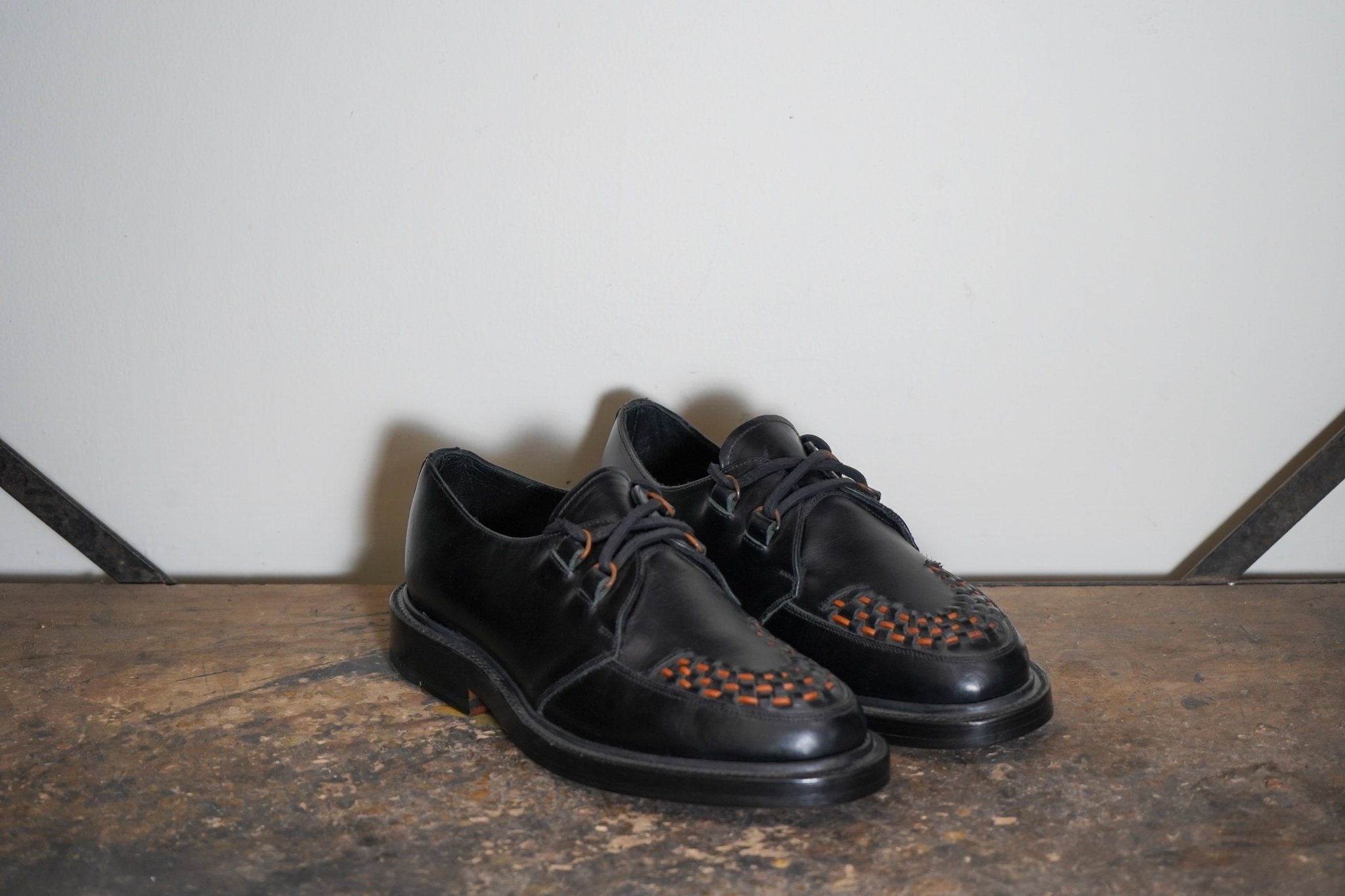 The creeper shoe was originally inspired by the crêpe-soled desert boots worn by WWII soldiers posted across the deserts of North Africa. This style of footwear became fashionable in the years following World War II, seeing resurgences of popularity at various times since then.