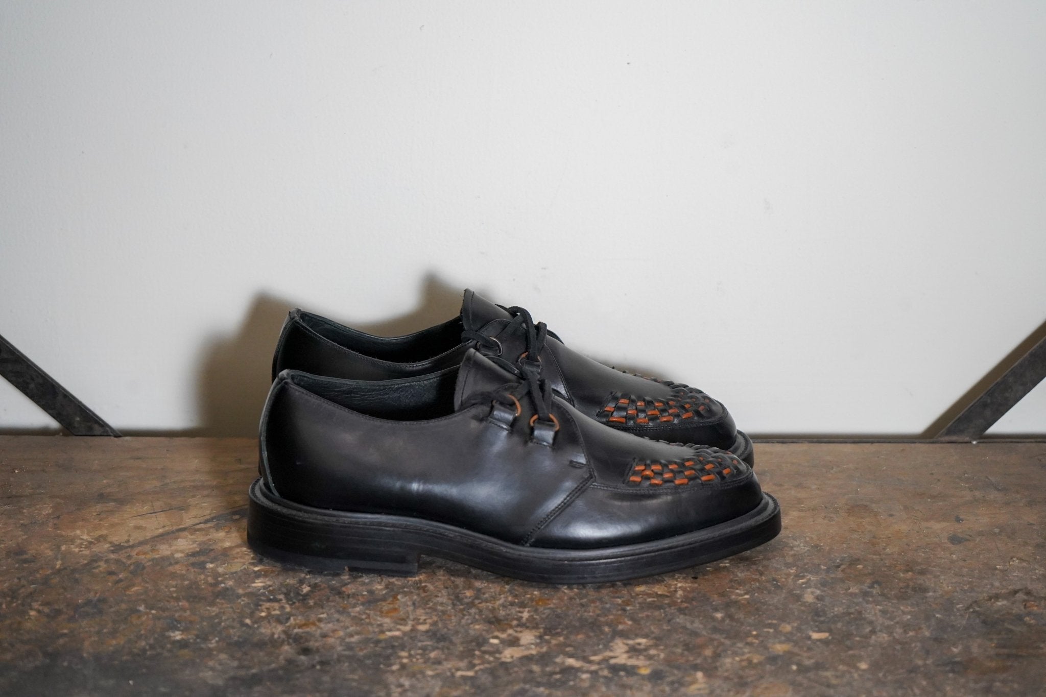 Here are some elements of the creepers we decided to maintain such as the rounded toe, the thick sole, and the incorporation of only two eyelets, plus the beautiful combination of two colors on the toebug.