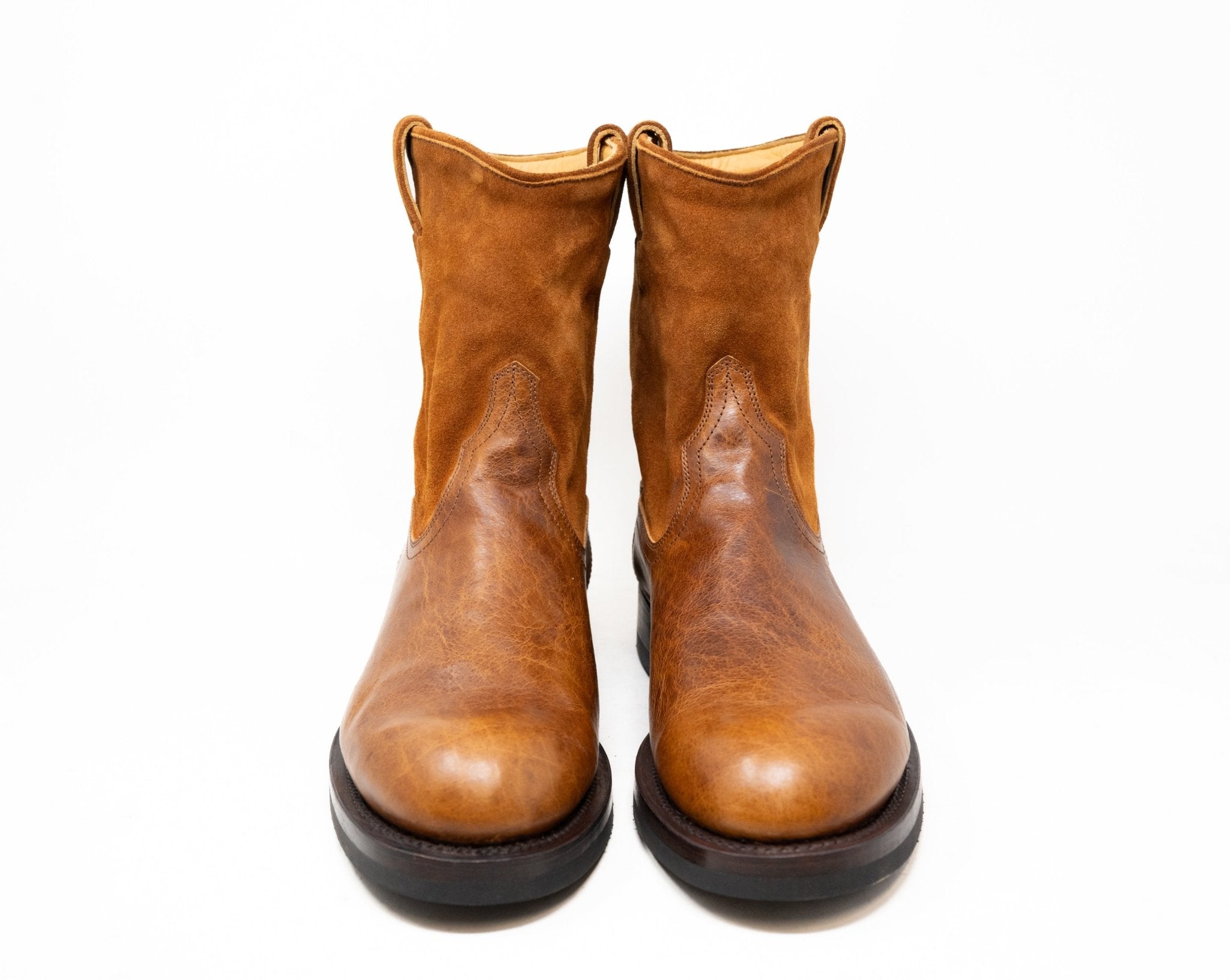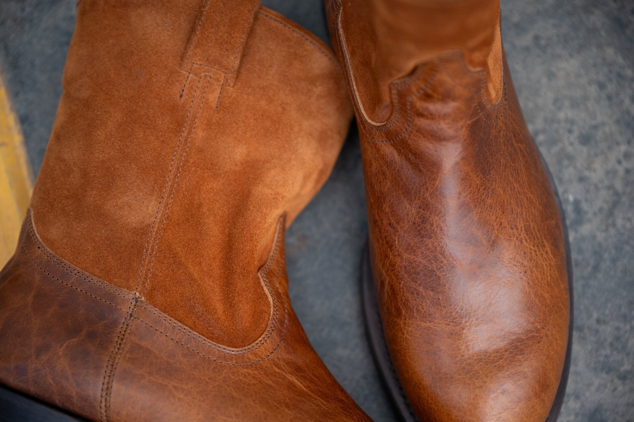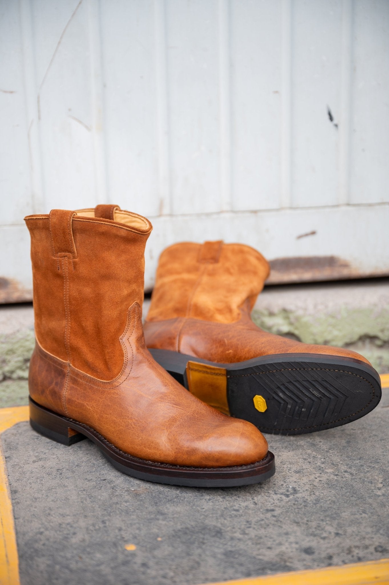 The Roper boot is a testament to rugged elegance and enduring craftsmanship. Its Tea core veg tan Bison leather upper exudes a rugged charm that's built to age beautifully, developing a unique patina over time. The 270-degree welt construction, combined with a Vibram 705 half outsole, ensures exceptional durability and longevity, making it a boot that's meant to be worn and cherished for years to come. Inside, the calf leather lining and insole offer exceptional comfort and support, while the leather heel counter and toe stiffener provide structure and stability. This is a boot for those who appreciate the finer details and demand uncompromising quality and timeless style.